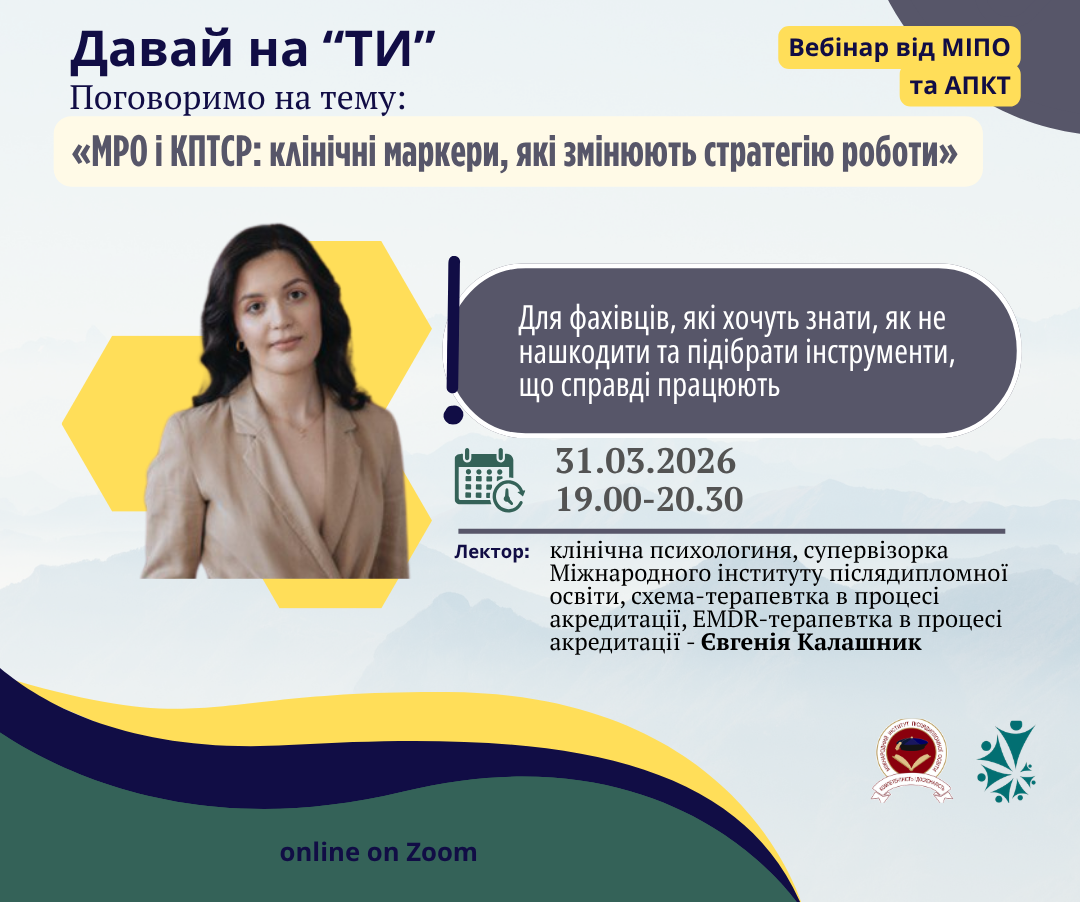У межах вебінару буде розглянута клінічна картина межового розладу особистості та комплексного посттравматичного стресового розладу, їхні спільні риси, а також критично важливі відмінності, що зумовлюють вибудову стратегії терапії